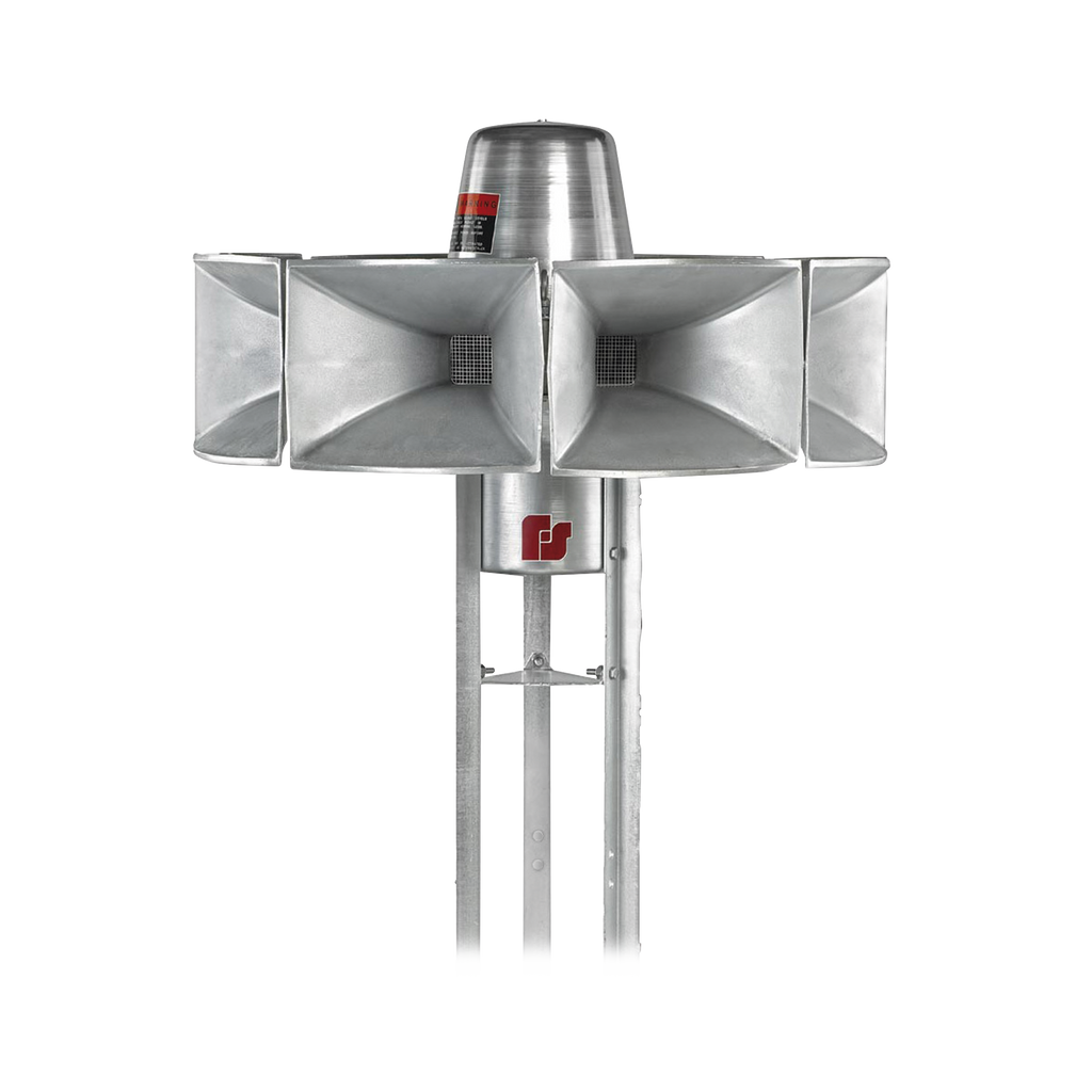 The Eclipse8 is a mid-sized DC-powered omni-directional siren for outdoor warning that produces high intensity warning signals. This powerful and lightweight outdoor siren provides coverage with a maximum sound pressure level of 115 dBc at 100 feet. The high decibel output provides maximum coverage with minimum installation costs. Operating from 48VDC, the siren utilizes the DC motor of our 2001 siren series for proven reliability.
