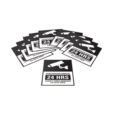 Etiquetas Adheribles Videovigilancia 24 Horas Color Blanco y Negro / Paquete con 10