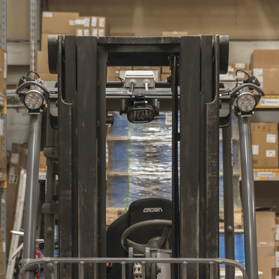 Esta luz está destinada a complementar una luz de advertencia de 360º proyectando un punto de advertencia azul en el suelo, en la parte delantera o trasera del vehículo. Esta característica de seguridad adicional es especialmente útil cuando hay rincones ciegos (es decir, estanterías de almacenes) y es probable que la vean peatones que no prestan mucha atención a su entorno.
