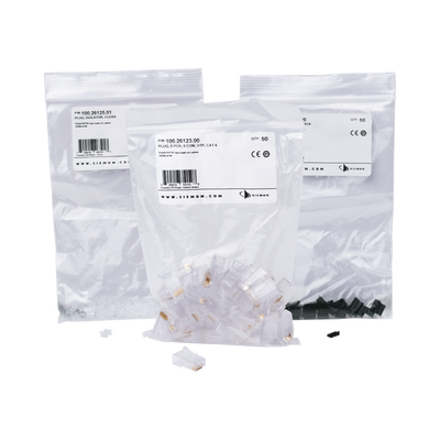 Siemon ofrece una linea de Plugs Modulares para parcheo, aplicaciones de área de trabajo y cableado a dispositivos finales. Los Plugs Modulares se pueden terminar a la longitud exacta del cable para mantener una instalación más ordenada y organizada. Todos los contactos del Plug tienen un mínimo de 50 micro pulgadas de chapado en oro sobre níquel y cumplen con las especificaciones TIA-1096 e IEC 60603-7.