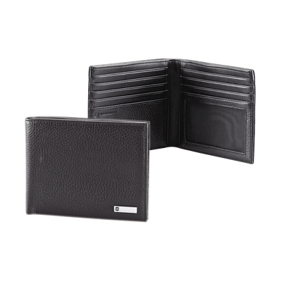 Cartera Barcelona Negra de Piel Rugosa de Doble Pliegue y Divisor de Billetes. Pocket Wallet.