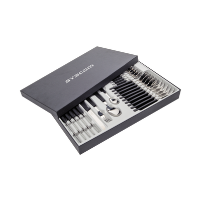 - Para recibir invitados o para las comidas diarias, esta es una colección esencial de 24 piezas de alto rendimiento Victorinox.