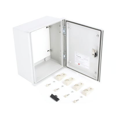 Gabinete de acero para uso en aplicaciones en exterior como postes, torres de telecomunicación o pared donde no se cuente con protección contra lluvia o polvo excesivo.