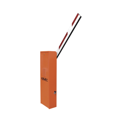 La gama de barreras FAAC está dotada de un seguro hidráulico anti aplastamiento, bloqueo de retención en cierre y apertura, desbloqueo manual con llave triangular, gabinete en acero resistente a colisiones.