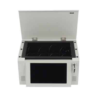 Estación para BodyCam, realiza la descarga de información y carga de batería simultáneamente, la estación se conecta por Ethernet para la descarga de información a el servidor central dedicado(Ftp).