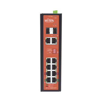 Switch PoE Industrial No administrable / Puertos 1-2 PoE 802.3 af/at y PoE 24 Vcc Pasivo 30W / Puertos 3-4 PoE 802.3 af/at/bt Hasta 60W / Puertos 5-8 PoE 802.3 af/at Hasta 30W / Los 8 puertos son Gigabit + 2 SFP combo / Presupuesto 300W