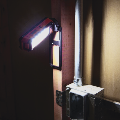 Luz de trabajo personal versátil y recargable que se apoya, engancha, cuelga y fija de forma magnética.