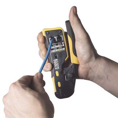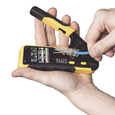 Ponchadora/Pelacables/Cortacables con Matraca para Conectores Pass-Thru RJ45 y Conectores Estándar RJ11/RJ12.