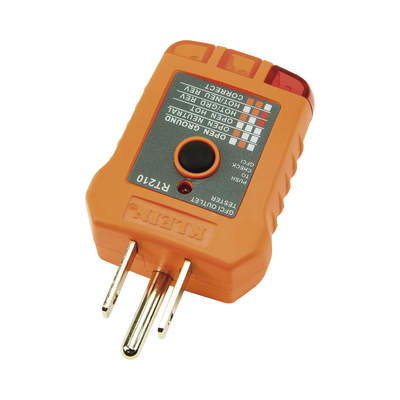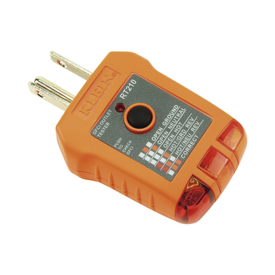 El probador de tomacorrientes Klein Tools está diseñado para detectar los problemas de cableado más comunes en tomacorrietes estándar y GFCI. El probador ofrece un cuadro muy conveniente que ayuda a determinar las condiciones de cableado en el tomacorriente en función de los resultados de las luces de LED. Condiciones que indica: puesta a tierra abierta, polaridad inversa, vivo abierto, neutro abierto, vivo/tierra invertidos.