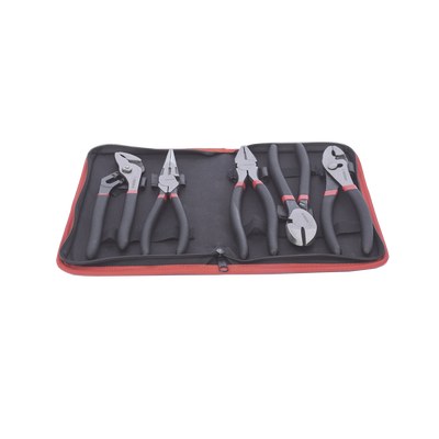 Juego de 5 Pinzas de 8' con Estuche. Incluye: P. Mecánica, P. para Tubo, P. Eléctrica, P. Corte, Nariz Larga.