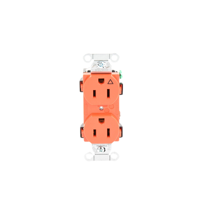 Contacto dúplex, grado comercial, 2 polos, 3 cables, 15A 125V, NEMA 5-15R, color naranja.
