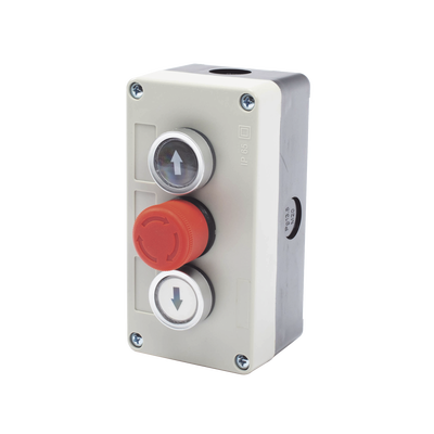 Botonera Triple con Boton de Stop Tipo Enclavado / Para Barreras Vehiculares, Operadores Corredizos y Abatibles.