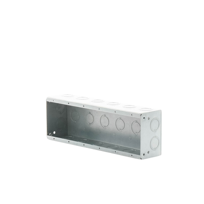 Las cajas multigang de acero galvanizado de 2 1/2' de profundidad con entradas para tubería de 1/2' - 3/4'.
