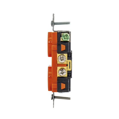 Contacto dúplex, grado comercial, 2 polos, 3 cables, 20A 125V, NEMA 5-20R, color naranja.