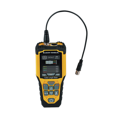 El medidor de longitud de cable Klein Tools es un probador portátil o Reflectómetro de Dominio Temporal (TDR, por sus siglas en inglés) basado en el método de Reflectometría. Dicho método funciona mediante la emisión de señales o impulsos eléctricos diseñado para medir el tiempo transcurrido entre el “pulso incidente” (inicial) y el “pulso reflejado” (final o eco). La diferencia de tiempo entre uno y otro se traduce en unidades de longitud (píes o metros y en unidades métricas o imperiales). El TDR permite de forma rápida y con gran precisión (+/- 2%), medir la longitud en cables eléctricos, de datos, de dos hilos y Romex® en un rango de distancia de hasta 914 m.