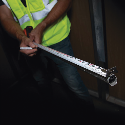 Cinta de medición con cinta duradera, ancha y resistente y rigidez horizontal de 4 m