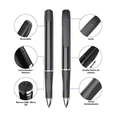 Cámara Oculta en Bolígrafo (Spyce Camera) / Full HD / Grabación de Video y Audio / Captura de Fotos / Soporta Memoria Micro-SD de hasta 64G / Tiempo de Carga Aprox. 1 hora / Tiempo de Trabajo 120 min. / Incluye Cable de Carga.