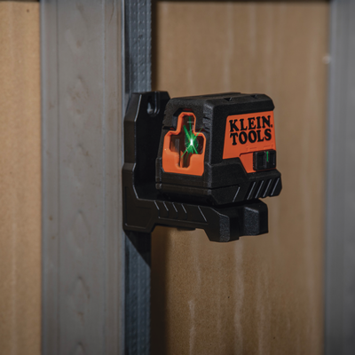 El nivel láser verde autonivelante tiene una línea verde brillante horizontal y vertical fácil de leer con un rango de trabajo de hasta 50' (15,2 m)