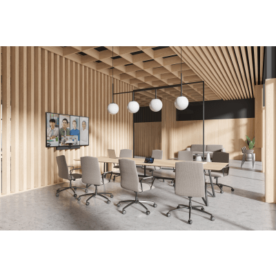 Ideal para salas de reuniones pequeñas a medianas, proporcionando una experiencia de video y audio de alta calidad.