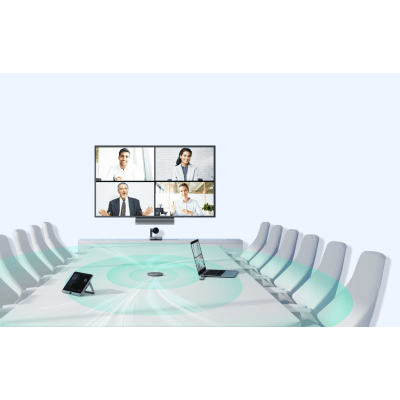 Ideal para salas de reuniones pequeñas y medianas, proporcionando cobertura de audio completa.