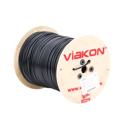 Conductor de cobre solido, aislamiento de polietileno espumado tipo SFS® (Skin Foam Skin), blindaje electromagnético contra interferencias (Malla de cobre al 80% de cobertura), cubierta de PVC (Policloruro de vinilo ) con propiedades Retardantes a la flama y resistente a los rayos UV.