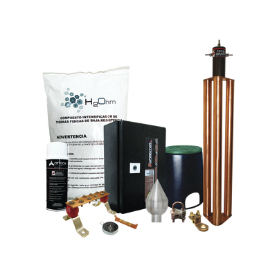 Kit completo de Pararrayos punta de aluminio y supersor de picos con tierra física de alta demanda. Cuenta con pararrayos punta de aluminio y Accesorios de Instalación.
