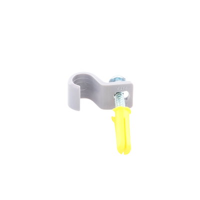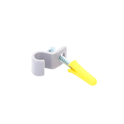 Kit de 12 grapas, 12 taquetes y 12 tornillos para sujetar conductores redondos o tubo en muro (2103-07240)