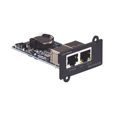 CyberPower RMCARD205 es un complemento de administración opcional para el UPS serie CyberPower específico. Al insertar la tarjeta en la ranura de red SNMP / HTTP del UPS, los usuarios pueden monitorear y controlar de forma remota los dispositivos en un back office, sala de servidores o centro de datos mediante navegadores web estándar, sistema de gestión de red (NMS) o interfaz de línea de comandos (SSH y Telnet) en su red. También pueden realizar tareas de gestión, incluidos paros programadas, arranques y reinicios.